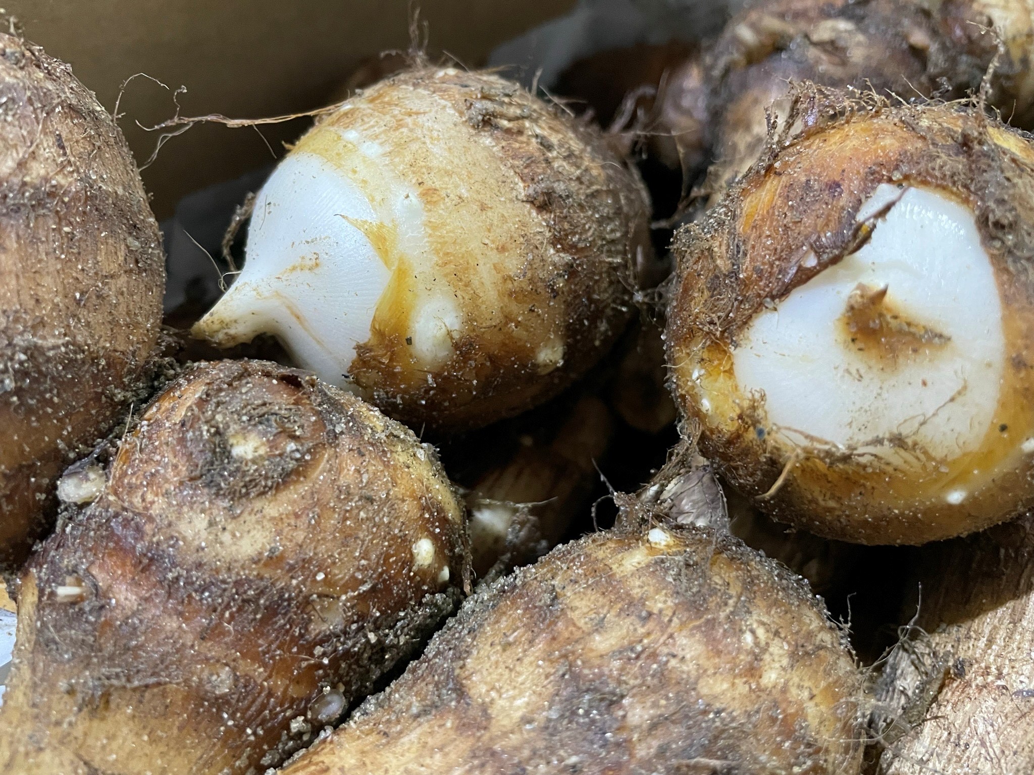 長期保存ができるようになるべく子芋と孫芋を切り離さずに土つきでお届けします。